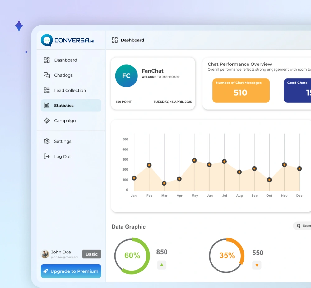 Conversa.AI monitors all the key metrics in one place. Measure your chatbot’s ROI and identify areas to optimize performance.