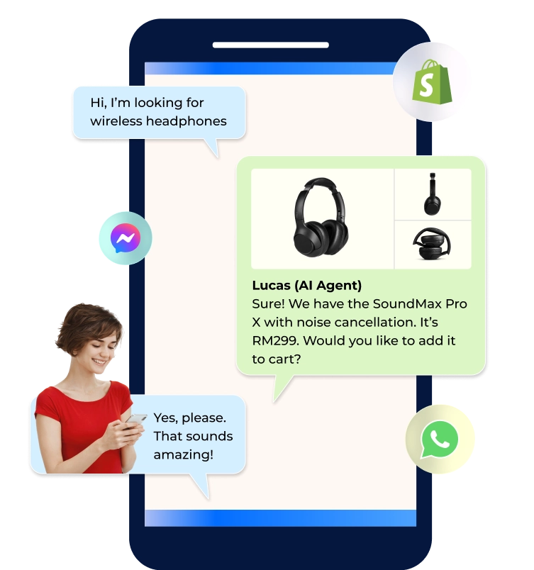 Our AI agents know the right moments to recommend, schedule, or assist, streamlining workflows and accelerating growth for e-commerce, retail, and service industries.