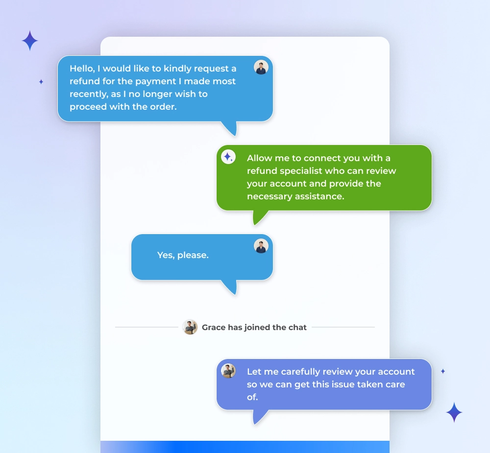 - AI hands off queries it can’t resolve.