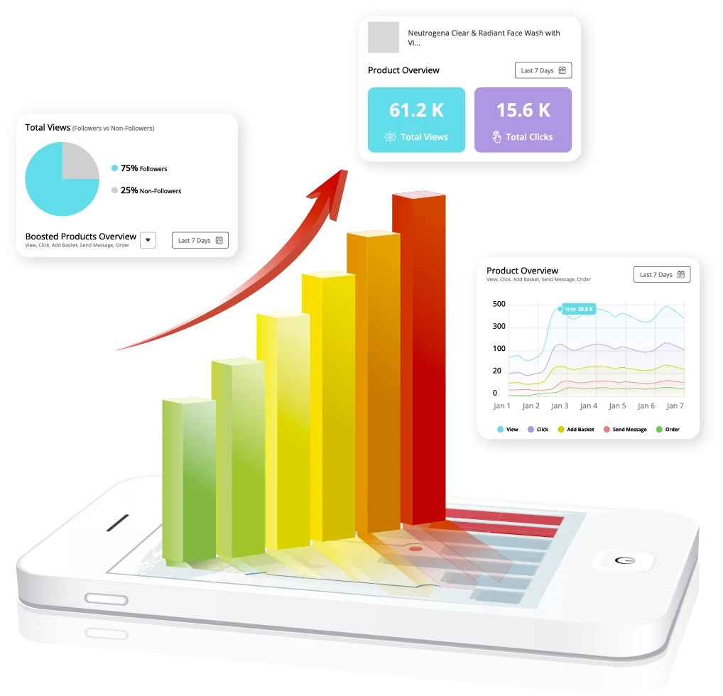 Track everything that drives your business’s (shopping, video performance, contest participation, games execution and customer engagement) through one powerful dashboard.